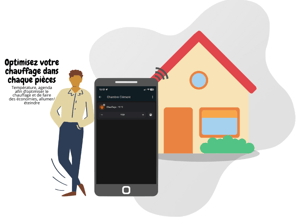 Un thermostat connecté permet de réguler facilement la température de votre maison, d'économiser de l'argent sur votre facture d'énergie en ajustant le chauffage ou la climatisation selon des règles ou agendas. Baisser la température d'un degré peut réduire la facture de 5 à 10 %.